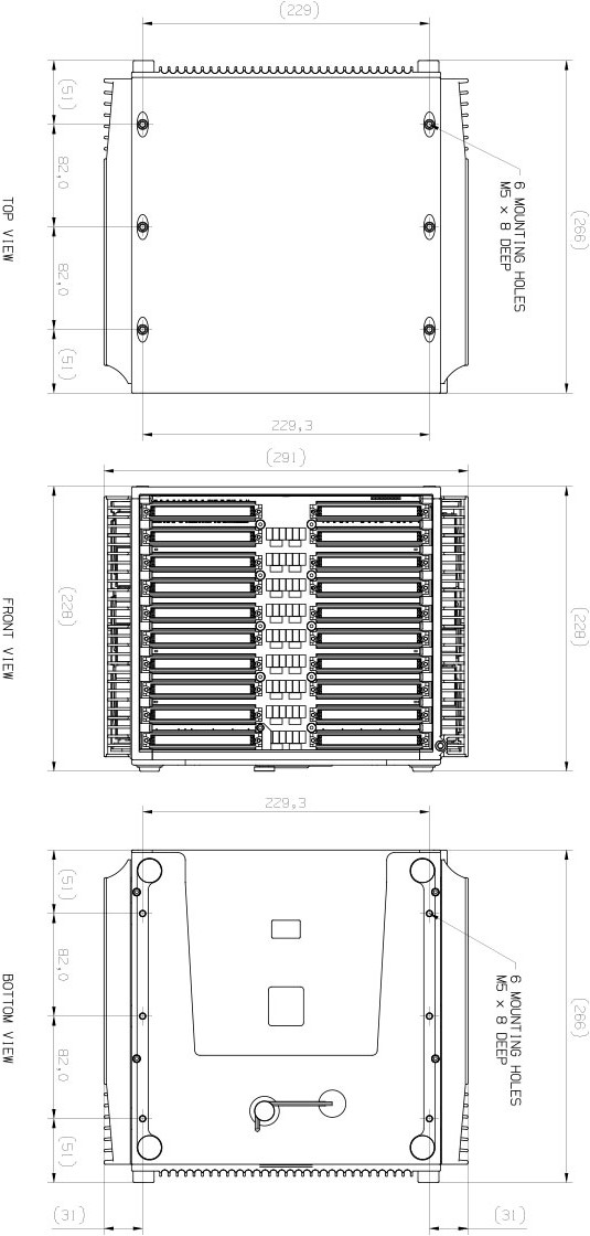 The following section provides the Top, Side and Bottom Views of the DECAQ 3-slot.
