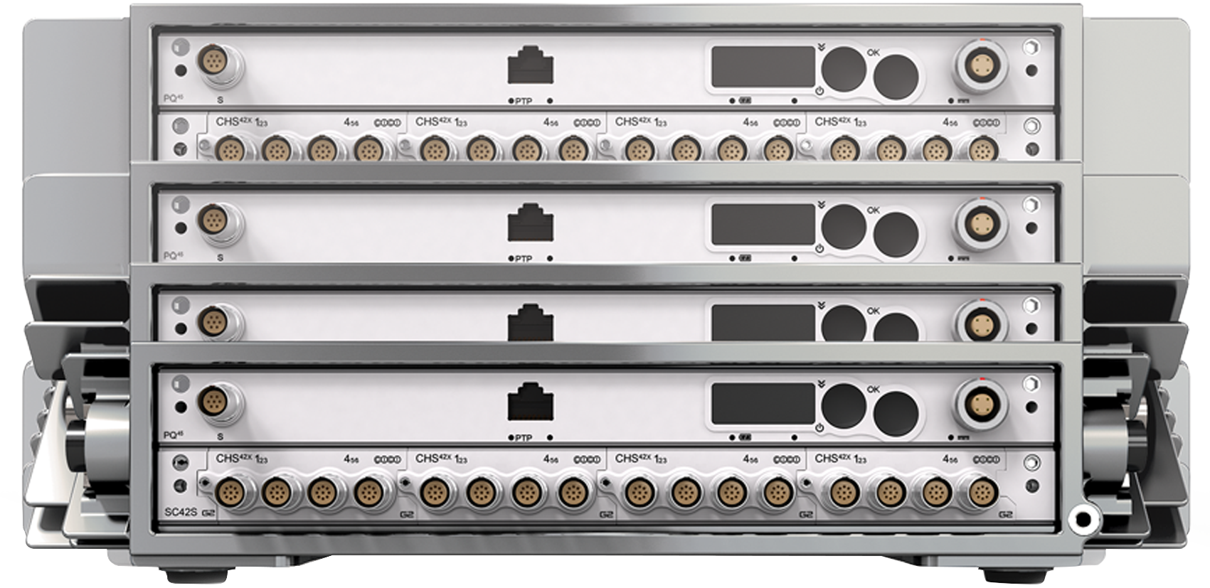 4. Module slots Featured Module: Slot 2 CHS42X:6 Channel Charge or ICP®/IEPE and Voltage Input Amplifier See Measure: Signal Conditioning for more information.